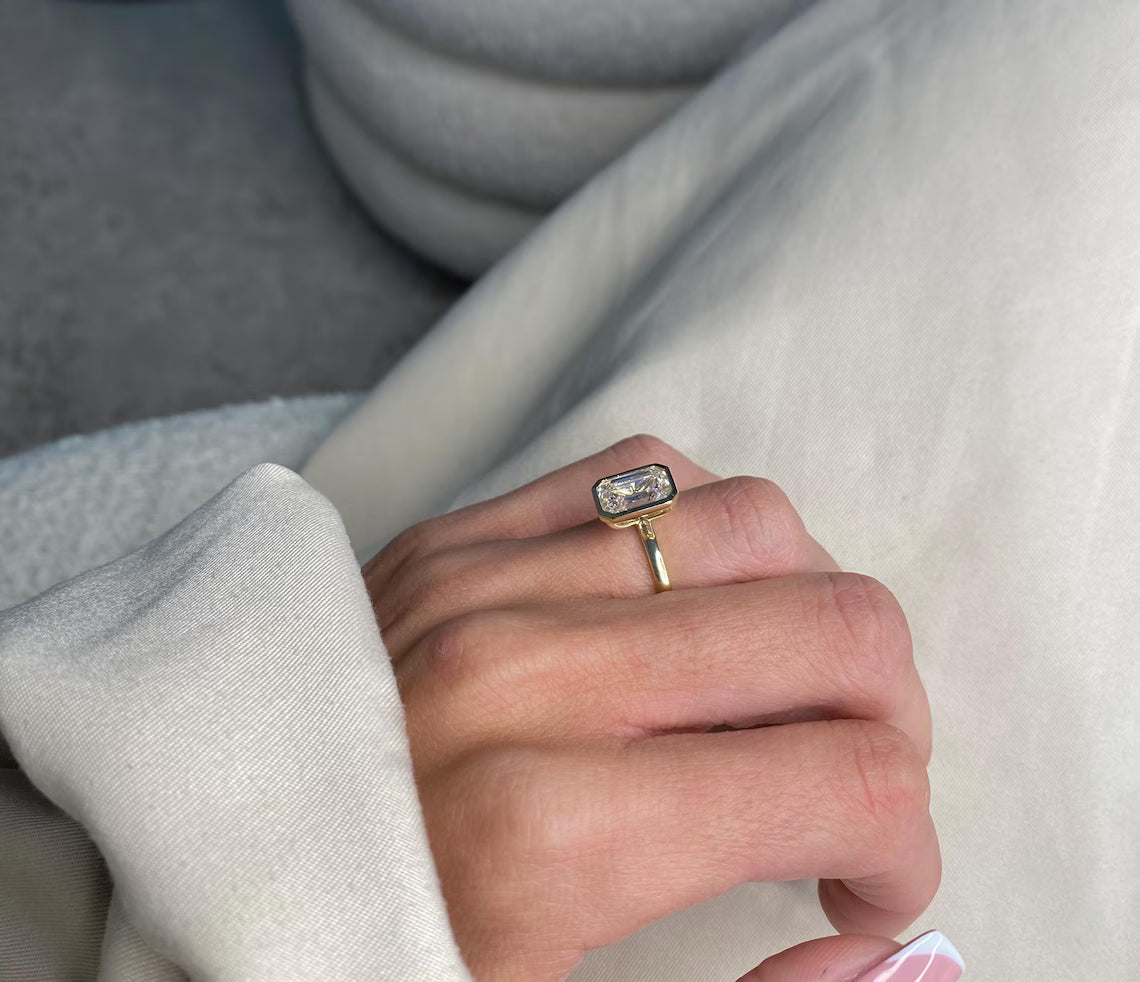 14K Gold Bezel 3 Carat Emerald Cut Lab Grown Diamond Engagement Ring IGI Certified