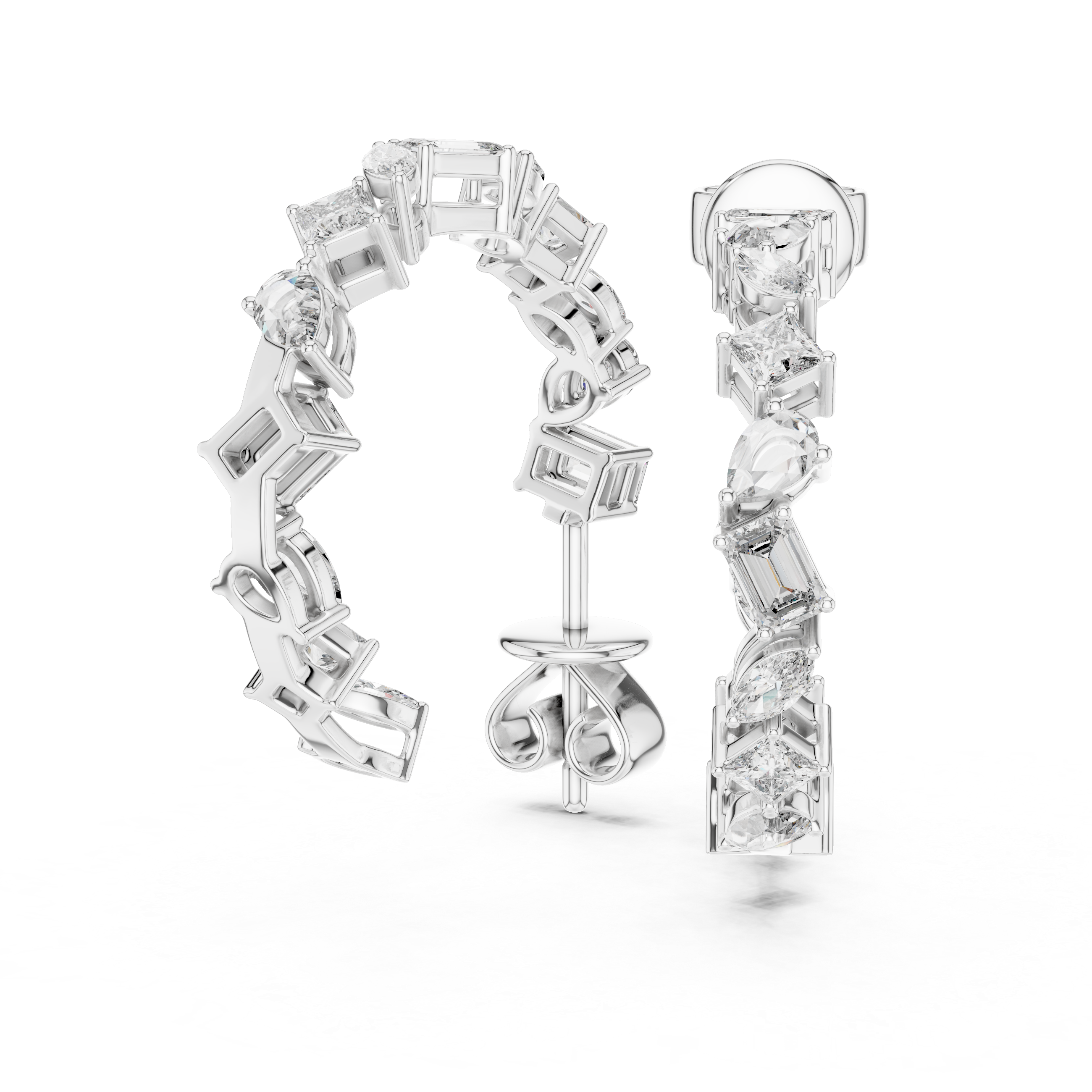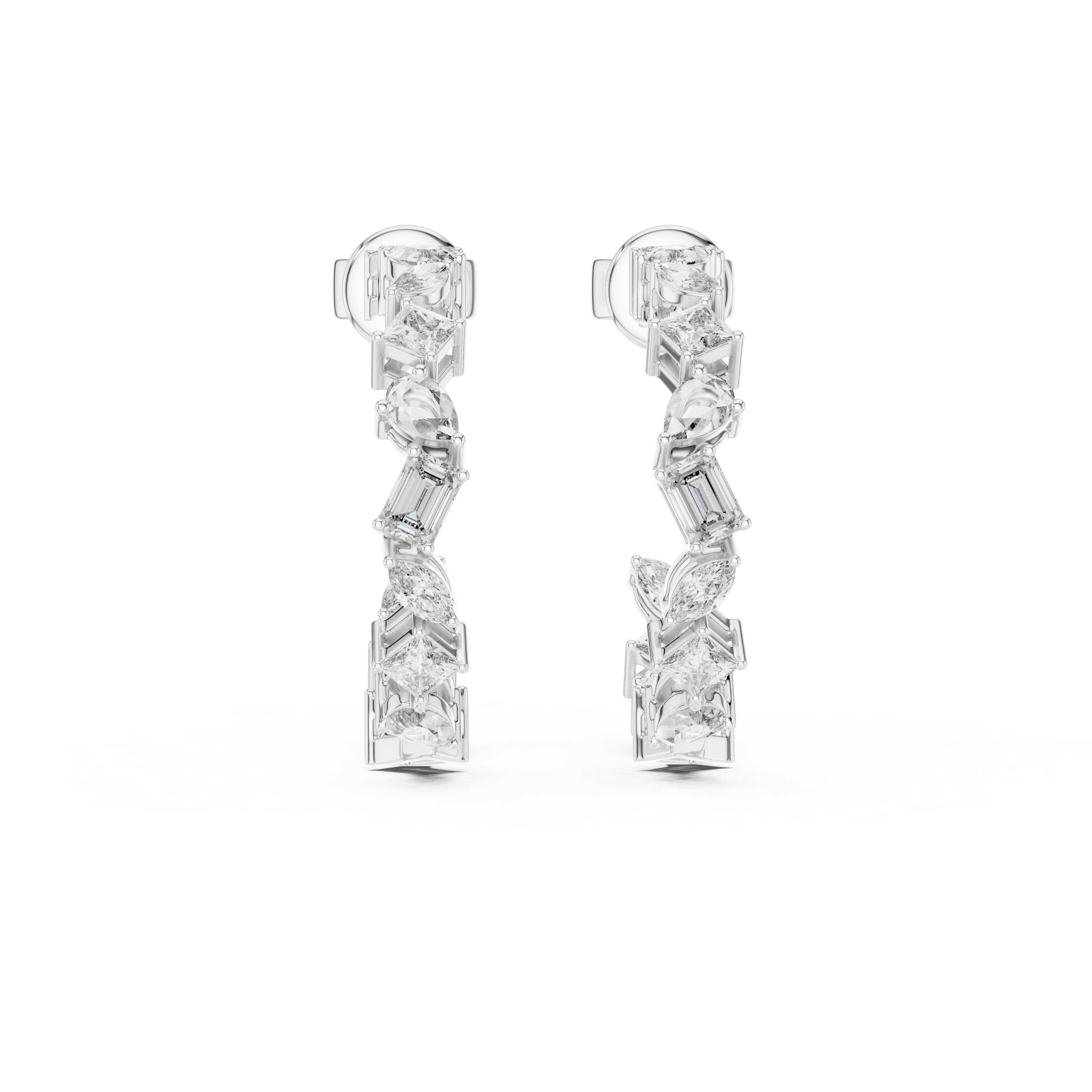 Deluxe Multi Cut Mixed Fancy Shape Diamond 925 Sterling Silver Hoop Earrings