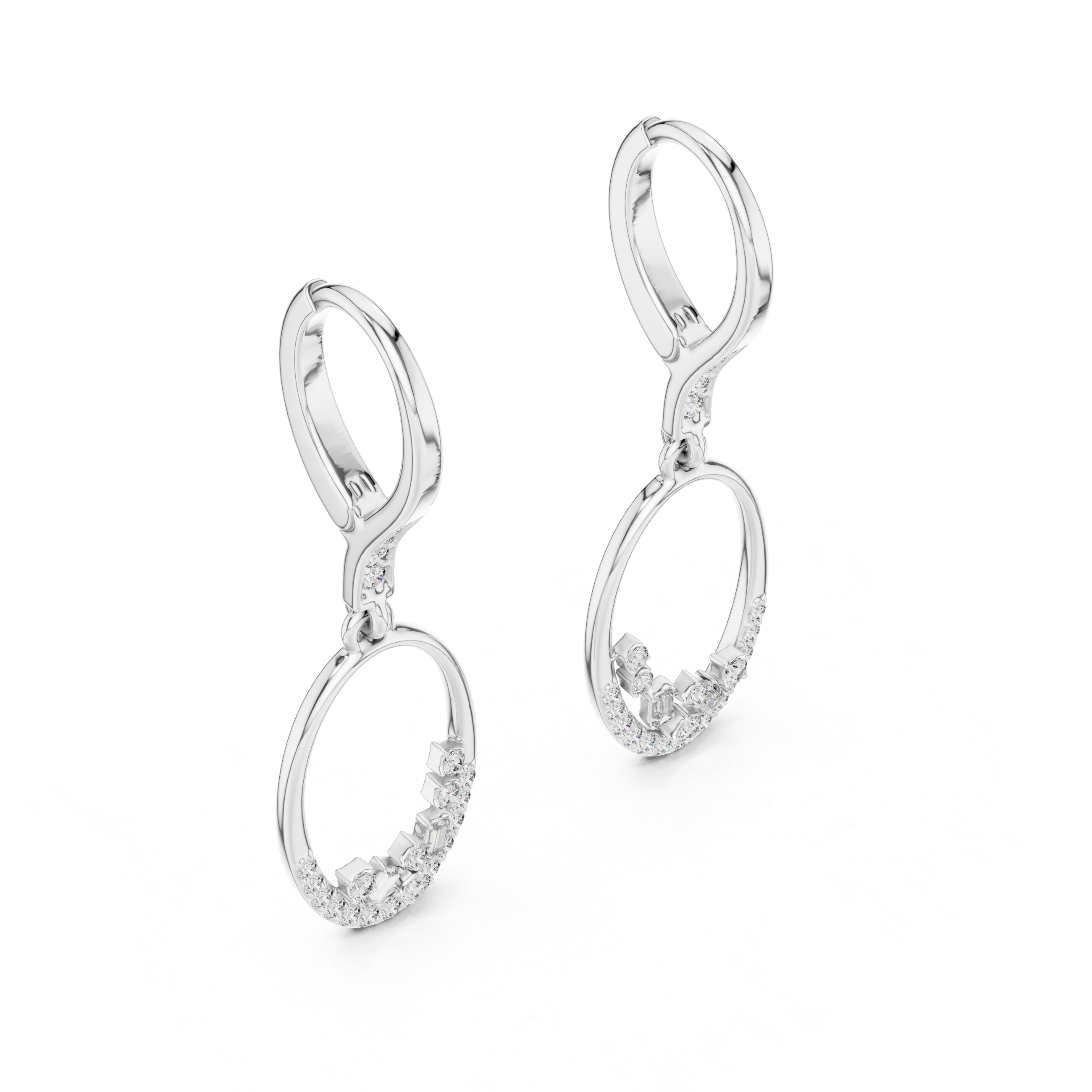 Round & Baguette Shape Moissanite Diamond Sterling Silver Luxe Diamond Hoop Earrings